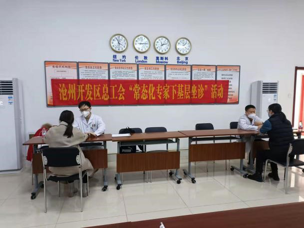 為進(jìn)一步提升職工幸福指數(shù),發(fā)揮職工健康生活室作用,公司工會聯(lián)合區(qū)總工會、滄州市總工會特聘請滄州市人民醫(yī)院中醫(yī)科張龍、何肖兩位醫(yī)生來公司開展免費(fèi)健康咨詢和問診活動。2月23日下午,三分廠會議室成了臨時(shí)義診室。兩位專家正襟危坐,仔細(xì)辯證,耐心回答職工的詢問,有針對性提出治療或者調(diào)理方案。專家們精湛的醫(yī)術(shù)和內(nèi)心細(xì)致的態(tài)度得到大家一致好評。