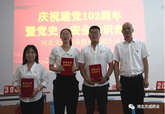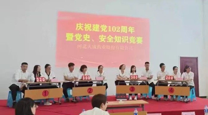 守望初心勇?lián)?dāng),篤定前行綻芳華 | 河北天成藥業(yè)開展慶祝建黨102周年優(yōu)秀黨員及先進(jìn)黨小組表彰大會(huì)暨主題黨史及安全知識(shí)競(jìng)賽活動(dòng)