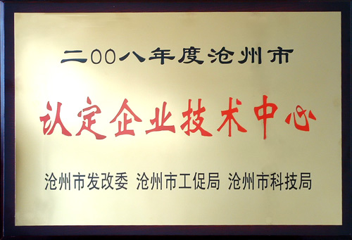 我公司被滄州市發(fā)改委、滄州市工促局、滄州市科技局聯(lián)合認(rèn)定為2008年度企業(yè)技術(shù)中心。近日,獎(jiǎng)牌下發(fā)到公司。這是繼我公司被評(píng)為“河北省高新技術(shù)企業(yè)”、“滄州市高新技術(shù)先導(dǎo)企業(yè)”之后,政府部門再次對(duì)我公司多年來一直致力于新技術(shù)研發(fā)和投入的肯定。這一稱號(hào)的取得,也會(huì)為企業(yè)帶來一定的政策支持。