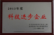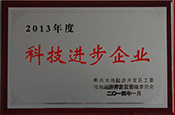 2014年榮獲“2013年度科技進(jìn)步企業(yè)” 榮譽(yù)稱號