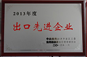 2014年榮獲“2013年度出口先進(jìn)企業(yè)” 榮譽(yù)稱號